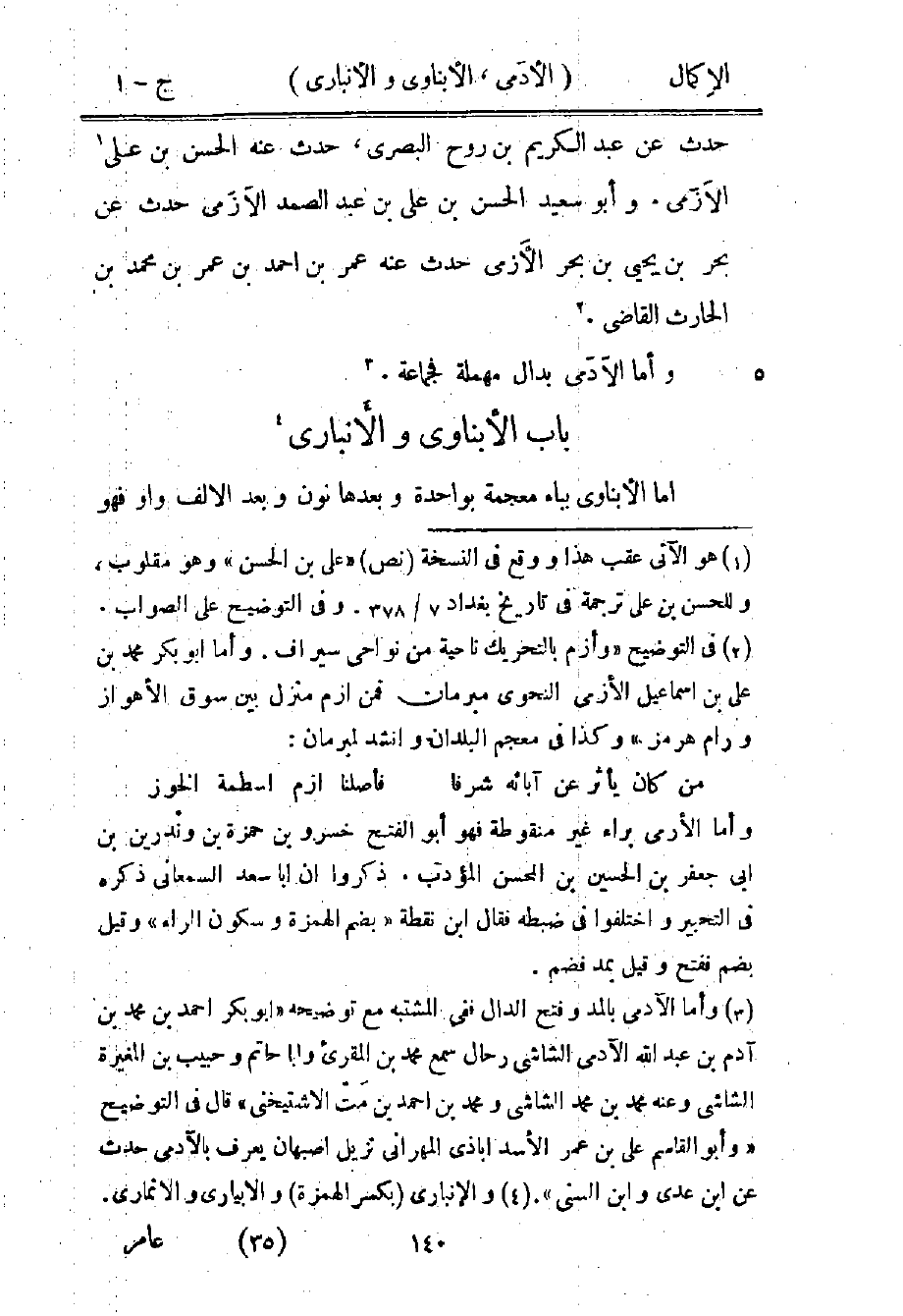 1 والإنباري "بكسر الهمزة والابياري والانماري.