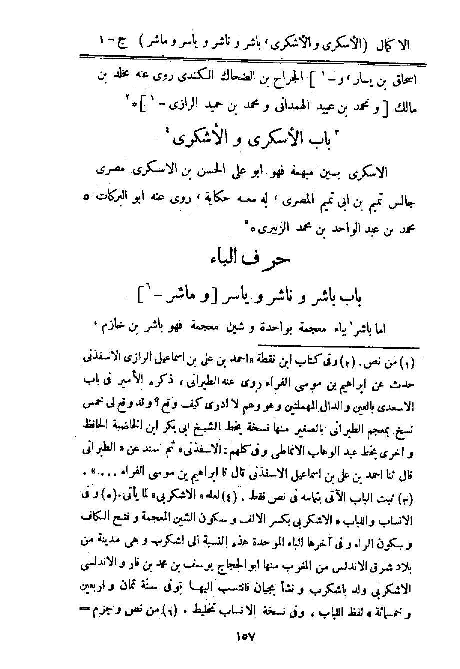 3 وفي الأنساب واللباب "الاشكربي بكسر الألف وسكون الشين المعجمة وفتح الكاف وسكون الراء وفي آخرها الباء الموحدة هذه النسبة إلى ايشكرب وهي مدينة من بلاد شرق الأندلس من المغرب منها أبو الحجاج يوسف بن محمد بن فار والأندلسي الاشكربي ولد باشكرب ونشأ بجيان فانتسب إليها توفي سنة ثمان وأربعين وخمسمائة" لفظ اللباب، وفي نسخة الانساب تخليط.