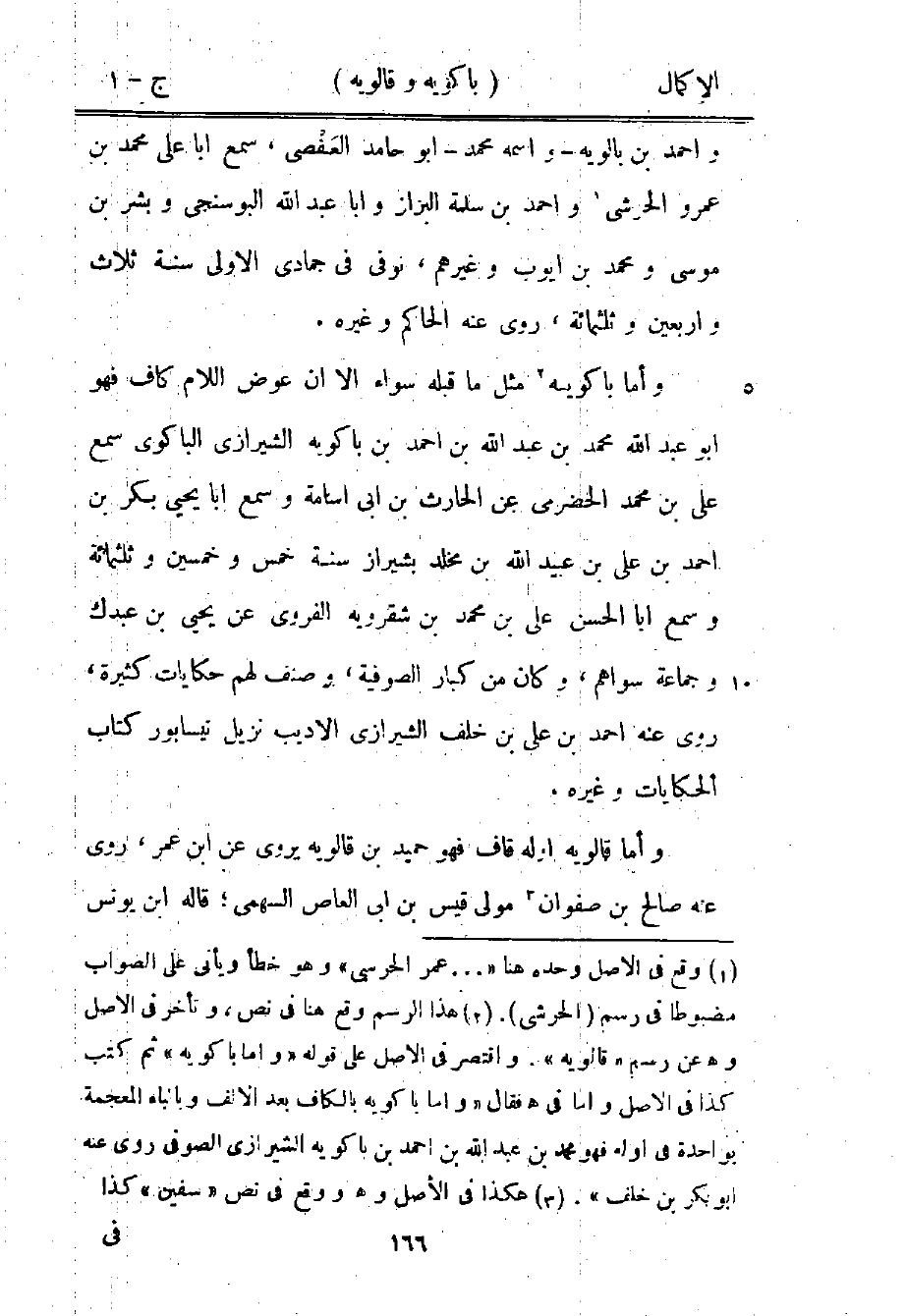2 هذا الرسم وقع هنا في نص، وتأخر في الأصل وهـ عن رسم "قالويه". واقتصر في الأصل على قوله: "وأما باكويه" ثم كتب كذا في الأصل وأما في هـ فقال: "وأما باكويه بالكاف بعد الألف وبالباء المعجمة بواحدة في أوله فهو محمد بن عبد الله بن أحمد بن باكويه الشيرازي الصوفي روى عنه أبو بكر بن خلف".
