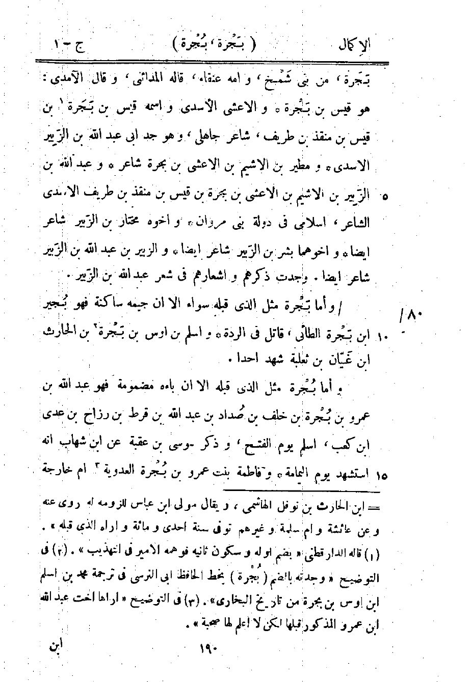 وأما بجرة مثل الذي قبله سواء إلا أن جميعه ساكنة فهو بجير بن بجرة الطائي، قاتل في الردة وأسلم بن أوس بن بجرة2 بن الحارث بن غيان بن ثعلبة شهد أحدًا.
