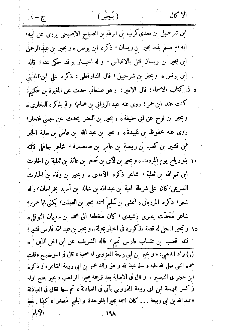 1 زاد الذهبي: "وبحير بن أبي ربيعة المخزومي له صحبة" قال في التوضيح: "قلت: سماه النبي صلى الله عليه وسلم عبد الله وهو والد عمر بن أبي ربيعة الشاعر" وذكره ابن حجر في التبصير. وقال في الإصابة بعد ترجمة بحيرا الراهب: "بحير بفتح أوله وكسر المهملة ابن أبي ربيعة المخزومي يأتي في العبادلة" ثم سها فقال في العبادلة: "عبد الله بن أبي ربيعة ... كان اسمه بجيرا بالموحدة والجيم مصغرا" كذا.=
