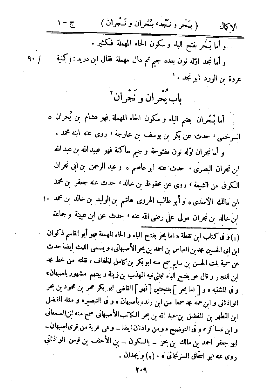 1 وفي كتاب ابن نقطة "أما بحر بفتح الباء والحاء المهملة فهو أبو القاسم ذكوان بن أبي الحسين محمد بن العباس بن أحمد بن بحر الأصبهاني، ويسمى الليث أيضا حدث عن سمية بنت الحسن بن سليم سمع منه أبو بكر بن كامل الخفاف، نقلته من خط محمد بن النجار وقال: هو بفتح الباء ثبتني فيه المهذب بن زينة وبيتهم مشهور بأصبهان" وفي المشتبه "و [أما بحر] بفتحتين [فهو] القاضي أبو بكر عمر بن محمود بن بحر الواذناني وابن عمه محمد سمعا من ابن ريذة بأصبهان" وفي التبصير "ومثله المفضل بن المطهر بن المفضل بن عبد الله بن بحر الكاتب الأصبهاني سمع منه ابن السمعاني وابن عساكر" وفي التوضيح "ومن واذنان أيضا -وهي قرية من قرى أصبهان- أبو جعفر أحمد بن مالك بن بحر -بالسكون- بن الأحنف بن قيس الواذناني روى عنه أبو إسحاق السرنجاني".