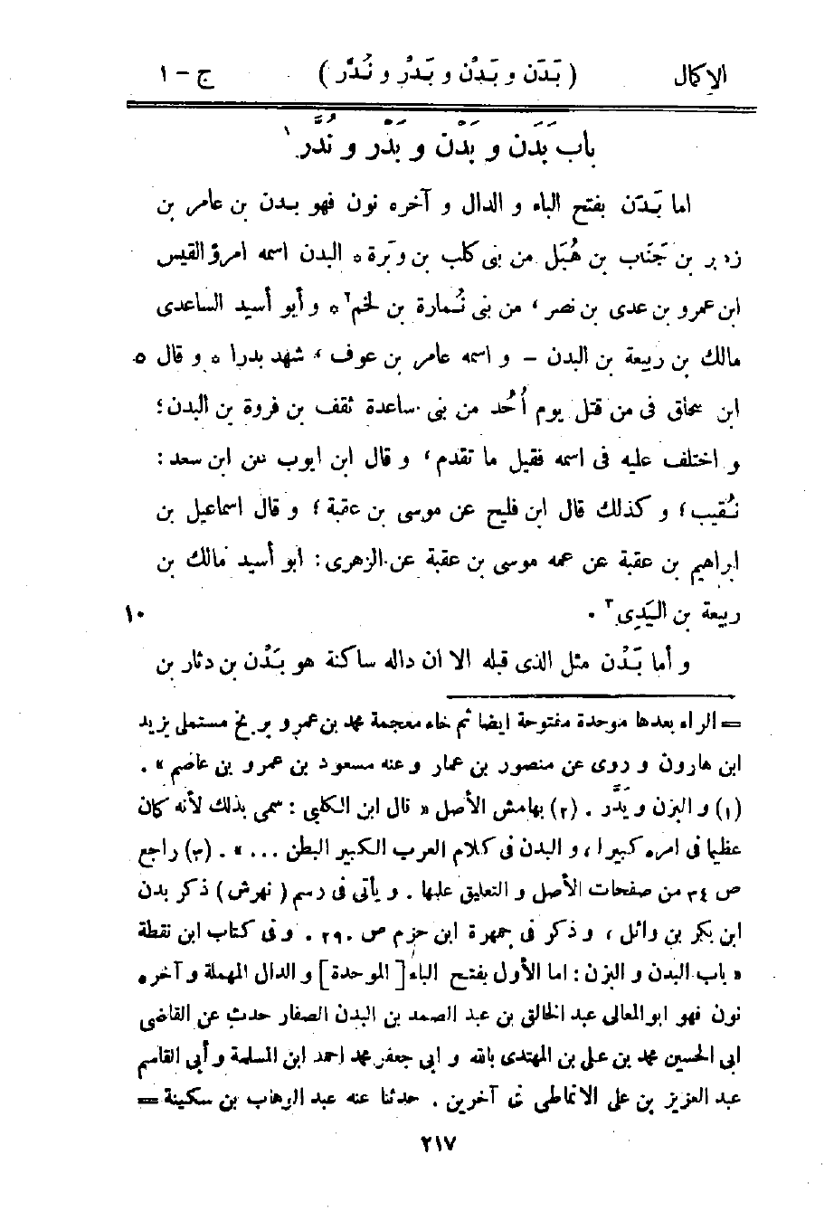 أما بدن بفتح الباء والدال وآخره نون فهو بدن بن عامر بن زهير بن جناب بن هبل من بني كلب بن وبرة، البدن اسمه امرؤ القيس بن عمرو بن عدي بن نصر، من بني نمارة بن لخم2، وأبو أسيد الساعدي مالك بن ربيعة بن البدن واسمه عامر بن عوف، شهد بدرًا وقال ابن إسحاق في من قتل يوم أحد من بني ساعدة ثقف بن فروة بن البدن؛ واختلف عليه في اسمه فقيل ما تقدم، وقال ابن أيوب عن ابن سعد: نقيب؛ وكذلك قال ابن فليح عن موسى بن عقبة؛ وقال إسماعيل بن إبراهيم بن عقبة عن عمه موسى بن عقبة عن الزهري: أبو أسيد مالك بن ربيعة بن اليدي3.