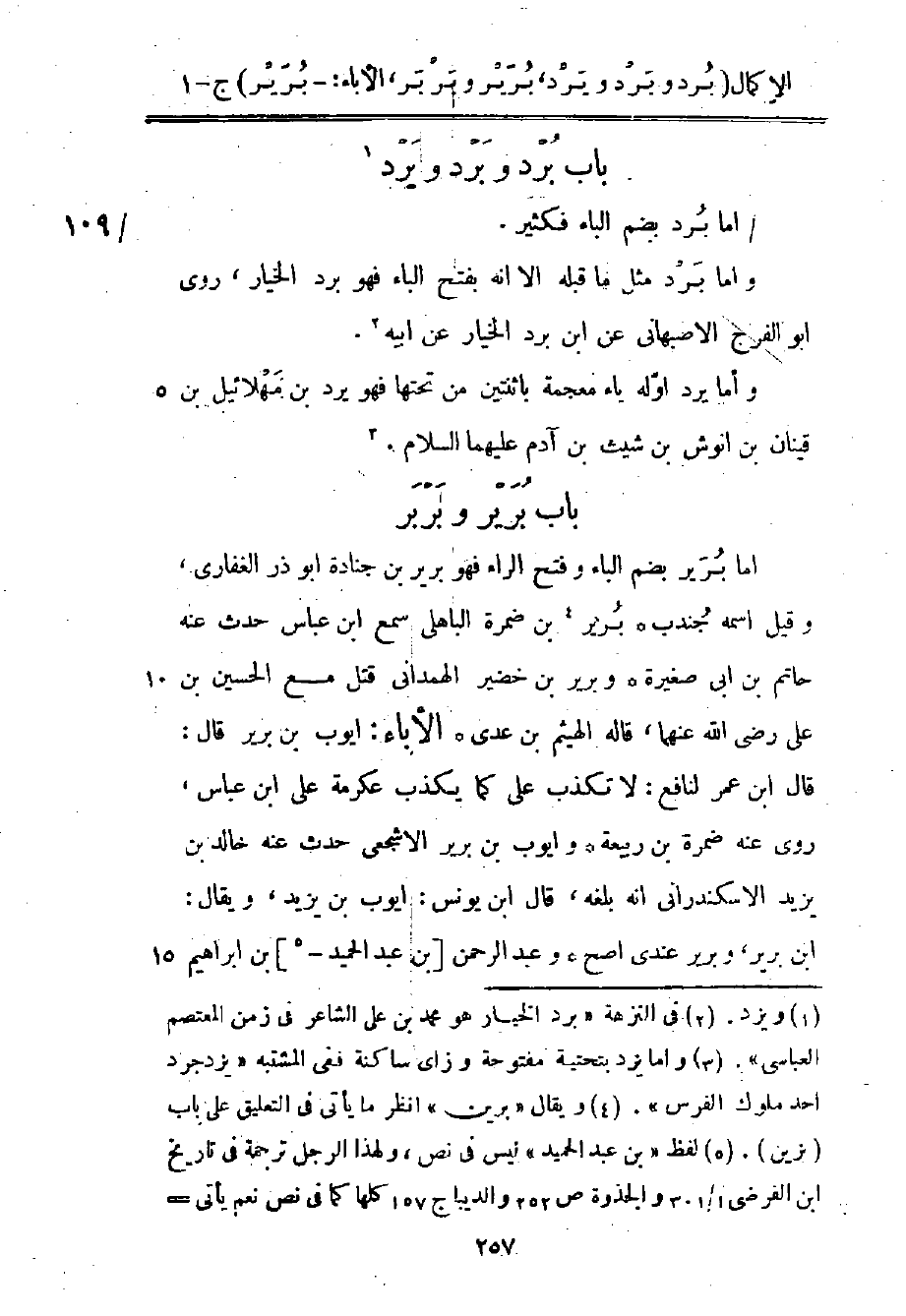 أما برير بضم الباء وفتح الراء، فهو برير بن جنادة أبو ذر الغفاري، وقيل: اسمه جندب برير1 بن ضمرة الباهلي سمع ابن عباس حدث عنه حاتم بن أبي صغيرة، وبرير بن خضير الهمداني قتل مع الحسين بن علي رضي الله عنهما، قاله الهيثم بن عدي.