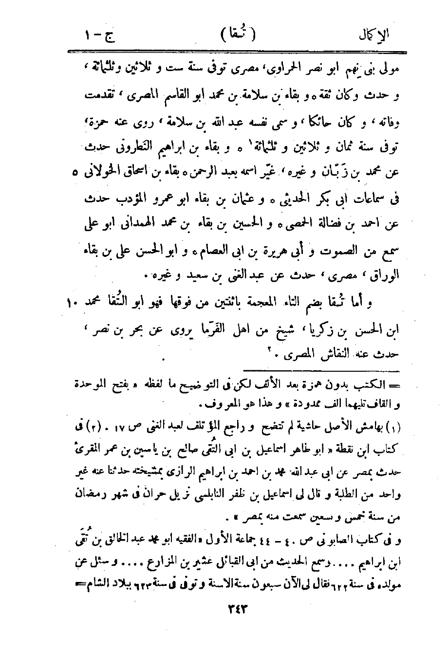 كتاب الإكمال في رفع الارتياب عن المؤتلف والمختلف في الأسماء والكنى والأنساب (اسم الجزء: 1)