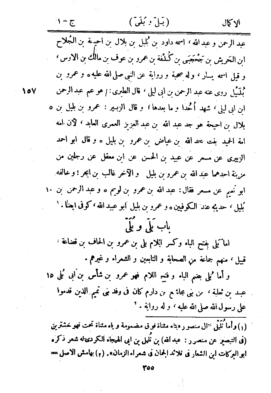 1 بهامش الأصل "وقال الدارقطني: وبلي بكسر الباء واللام فهو في حديث يرويه عزرة بن قيس عن خالد بن الوليد: بعثني عمر إلى الشام، وفي آخر الحديث: حتى إذا كنا بذي بلي وذي بليان. وقد فسره أبو عبيد في حديث غيره" أقول: وليس من أسماء الناس.