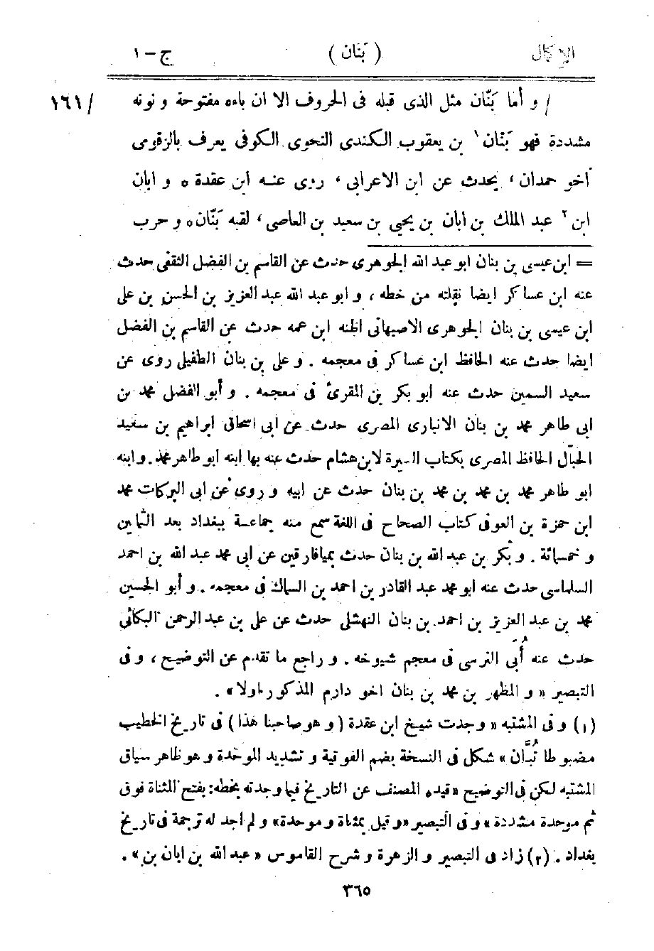1 وفي المشتبه "وجدت شيخ ابن عقدة "وهو صاحبنا هذا" في تاريخ الخطيب مضبوطا تُبَّان" شكل في النسخة بضم الفوقية وتشديد الموحدة، وهو ظاهر سياق المشتبه، لكن في التوضيح "قيده المصنف عن التاريخ فيما وجدته بخطه: بفتح المثناة فوق ثم موحدة مشددة" وفي التبصير "وقيل: بمثناة وموحدة" ولم أجد له ترجمة في تاريخ بغداد.