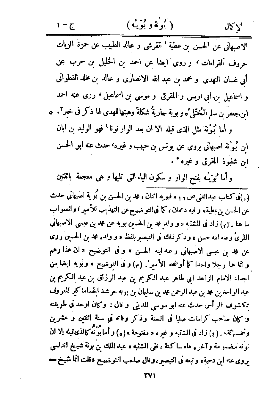 1 في كتاب عبد الغني ص16 "فبويه اثنان، محمد بن الحسن بن بويه أصبهاني حدث عن الحسن بن عطية" وفيه وهمان، كما في التوضيح عن التهذيب للأمير، والصواب ما هنا.