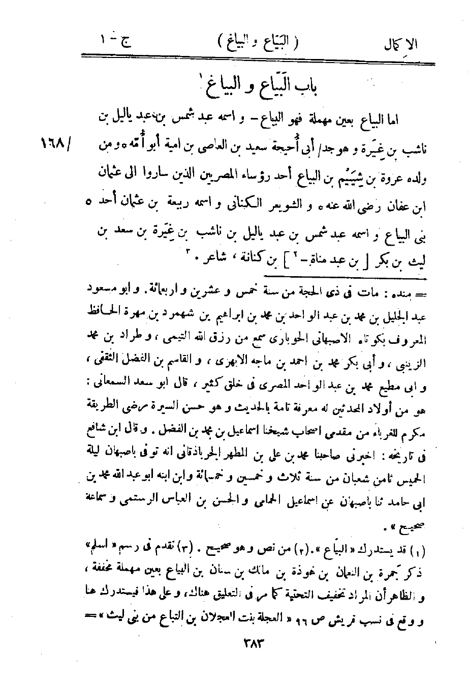3 تقدم في رسم "أسلم" ذكر جمرة بن النعمان بن هوذة بن مالك بن سنان بن البياع بعين مهملة مخففة، والظاهر أن المراد تخفيف التحتية كما مر في التعليق هناك، وعلى هذا فيستدرك هنا ووقع في نسب قريش ص96 "العجلة بنت العجلان بن التباع من بني ليث" والصواب البياع وهو المذكور أول الباب وهو ابن عبد ياليل بن ناشب بن غيرة بن سعد بن ليث بن بكر بن عبد مناة بن كنانة راجع جمهرة ابن حزم ص173.