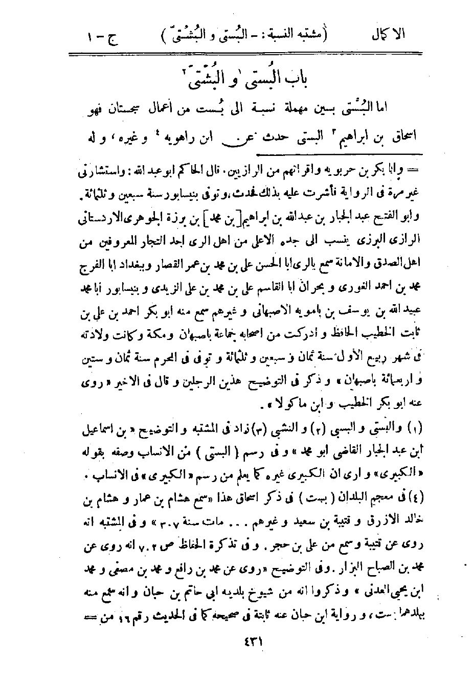 3 زاد في المشتبه والتوضيح "بن إسماعيل بن عبد الجبار القاضي أبو محمد" وفي رسم "البستي" من الأنساب وصفه بقوله: "الكبيرى" وأرى أن الكبيري غيره كما يعمل من رسم "الكبيرى" في الأنساب.