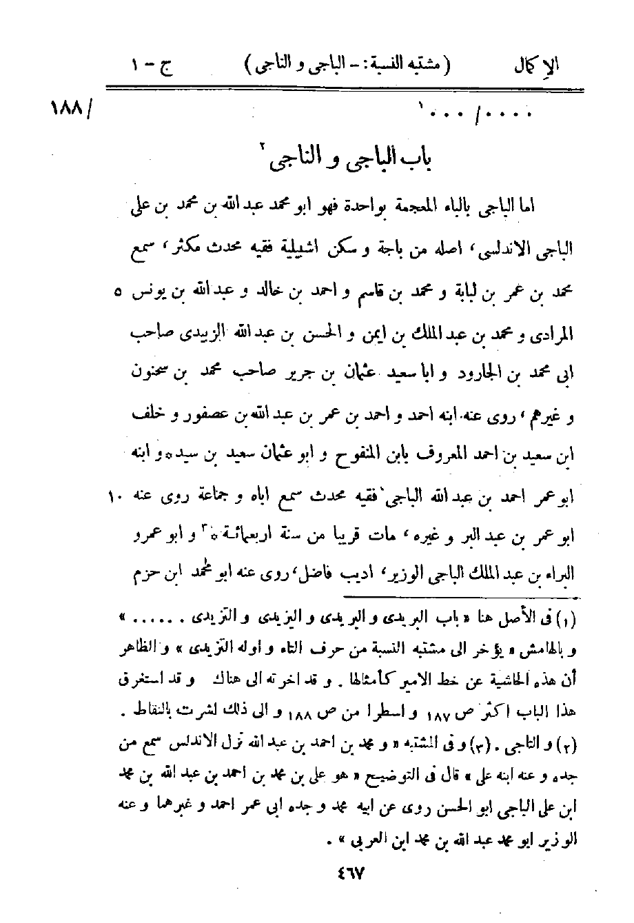 1 في الأصل هنا "باب البريدي والبريدي واليزيدي والتزيدي ... " وبالهامش "يؤخر إلى مشتبه النسبة من حرف التاء وأوله التزيدي" والظاهر أن هذه الحاشية عن خط الأمير كأمثالها. وقد أخرته إلى هناك. وقد استغرق هذا الباب أكثر ص187 وأسطرا من ص188 وإلى ذلك لشرت بالنقاط.