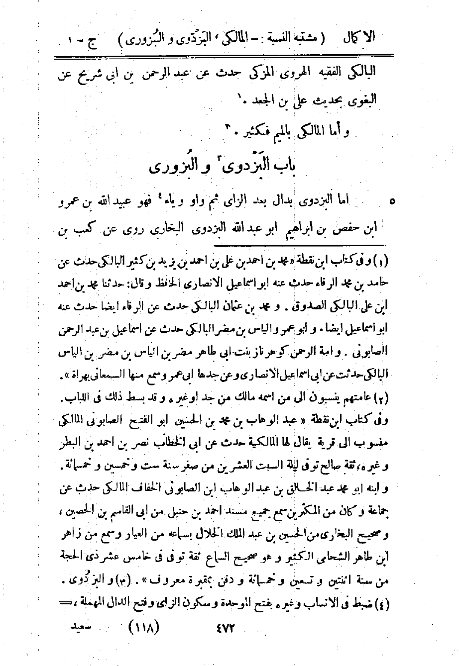 2 ضبط في الأنساب وغيره بفتح الموحدة وسكون الزاي وفتح الدال المهملة وهو نسبة إلى بزدوة بمثل هذا الضبط كما في معجم البلدان، وقد قيل في النسبة: بزدي كما تقدم، ووقع هنا في الأصل بضم الدال خطأ، نعم هناك من يقال له: البزدوي بضم الدال ممن لم يذكره الأمير، وهي نسبة إلى اسم الجد بزدويه على ما ينطقه المحدثون فيه وفي بابه كسيبويه ونفطويه وسيأتي إن شاء الله.