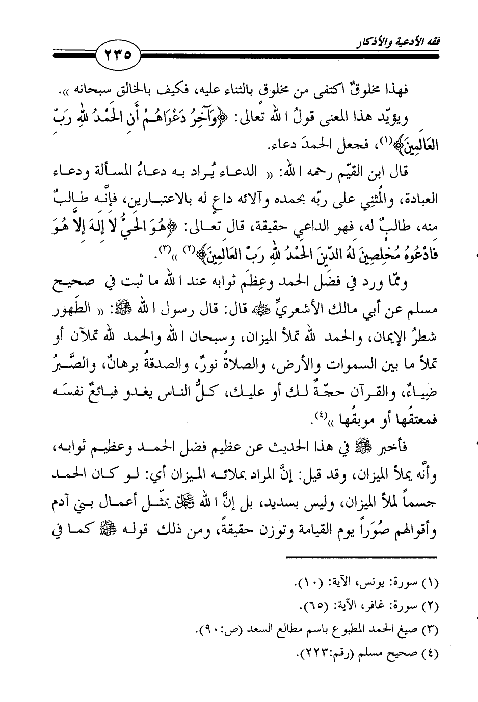 ويؤيّد هذا المعنى قولُ الله تعالى: {وَآخِرُ دَعْوَاهُمْ أَنِ الحَمْدُ للهِ رَبِّ العَالَمِينَ} 1، فجعل الحمدَ دعاء.