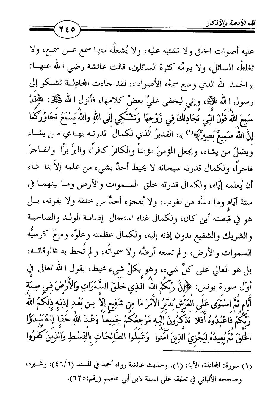 1 سورة: المجادلة، الآية: (1) . وحديث عائشة رواه أحمد في المسند (6/46) ، وغيره، وصححه الألباني في تعليقه على السنة لابن أبي عاصم (رقم:625) .