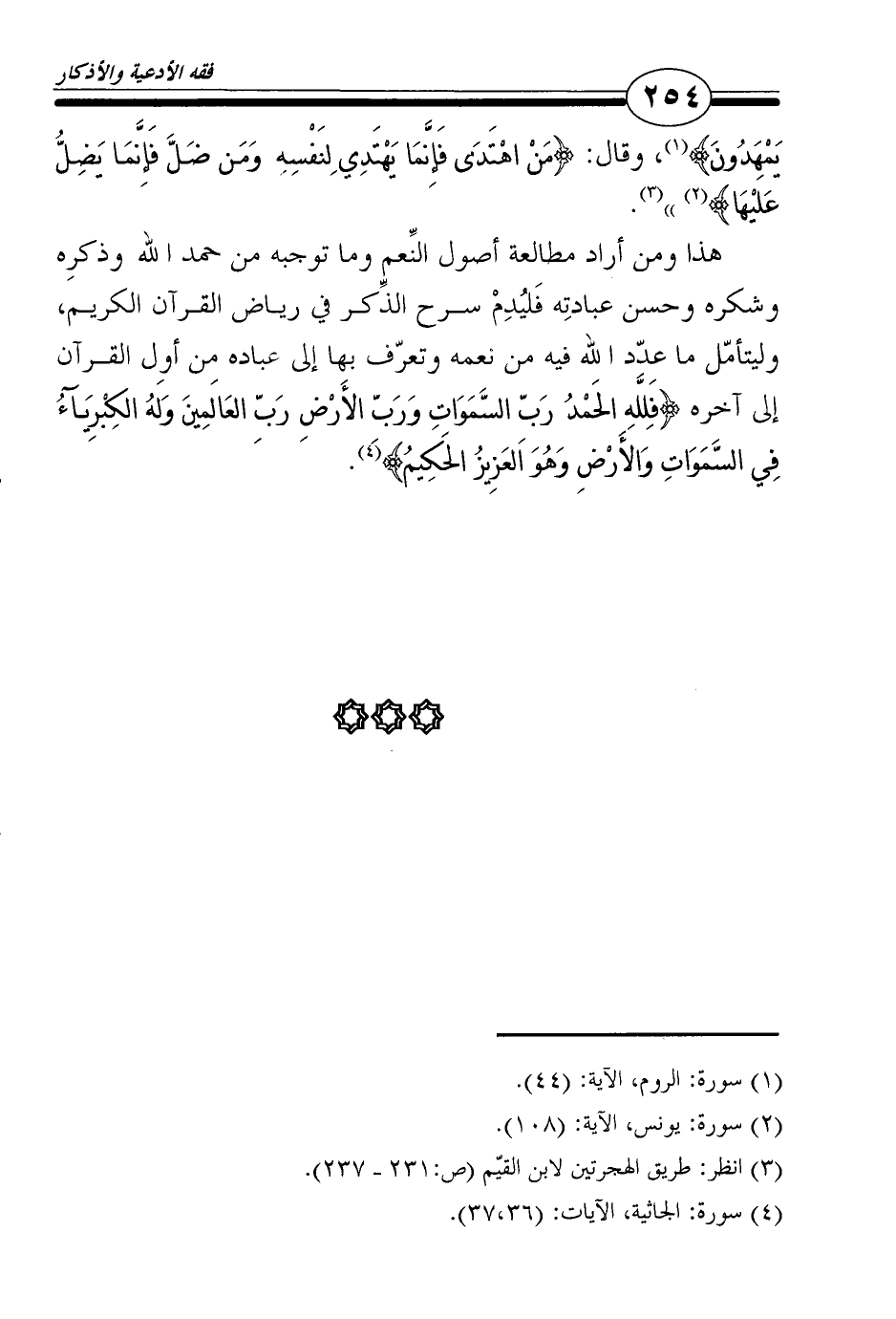 هذا ومن أراد مطالعة أصول النِّعم وما توجبه من حمد الله وذكرِه وشكره وحسن عبادتِه فَليُدِمْ سرح الذِّكر في رياض القرآن الكريم، وليتأمّل ما عدّد الله فيه من نعمه وتعرّف بها إلى عباده من أول القرآن إلى آخره {فَلِلَّهِ الحَمْدُ رَبِّ السَّمَوَاتِ وَرَبِّ الأَرْضِ رَبِّ العَالَمِينَ وَلَهُ الكِبْرِيَآءُ فِي السَّمَوَاتِ وَالأَرْضِ وَهُوَ العَزِيزُ الحَكِيمُ} 4.