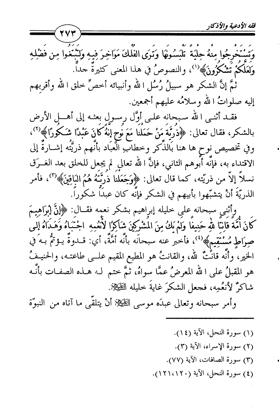ثمَّ إنَّ الشكر هو سبيلُ رُسُل الله وأنبيائه أخصِّ خلق الله وأقربِهم إليه صلواتُ الله وسلامُه عليهم أجمعين.