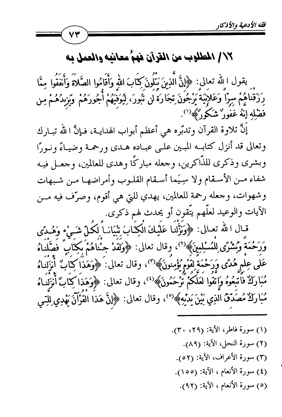 12/ المطلوب من القرآن فهمُ معانيه والعمل به