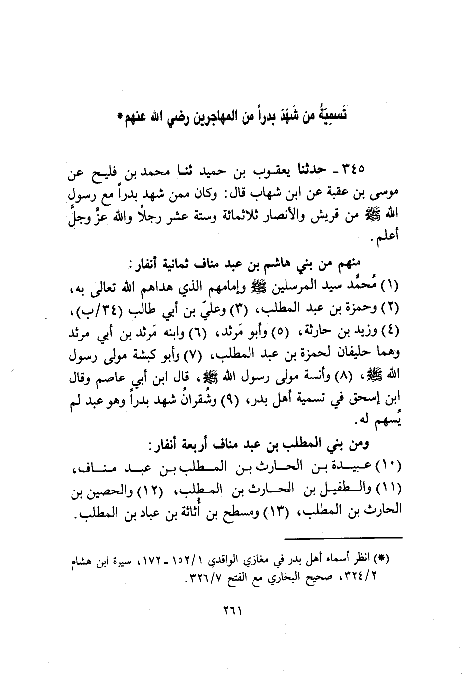 §تَسْمِيَةُ مَنْ شَهِدَ بَدْرًا مِنَ الْمُهَاجِرِينَ رَضِيَ اللَّهُ عَنْهُمْ
