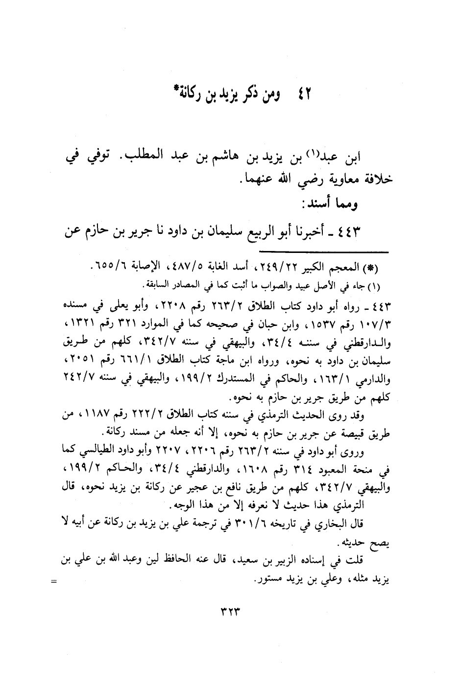 §وَمِنْ ذِكْرِ يَزِيدَ بْنِ رُكَانَةَ بْنِ عَبْدِ بْنِ يَزِيدَ بْنِ هَاشِمِ بْنِ عَبْدِ الْمُطَّلِبِ تُوُفِّيَ فِي خِلَافَةِ مُعَاوِيَةَ رَضِيَ اللَّهُ عَنْهُمَا