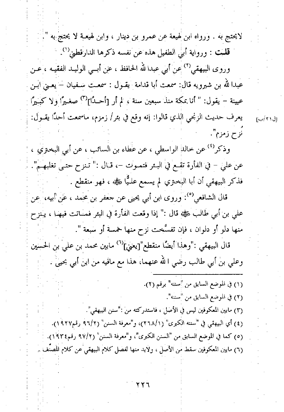 وروى البيهقي عن أبي عبد الله الحافظ، عن أبي الوليد الفقيه، عن عبد الله بن شيرويه قال: سمعت أبا قدامة يقول: سمعت سفيان – يعني ابن عيينة – يقول: "أنا بمكة منذ سبعين سنة، لم أر [أحدا] صغيرا ولا كبيرا يعرف حديث الزنجي الذي قالوا: إنه وقع في بئر زمزم، ما سمعت أحدا يقول: نزح زمزم".