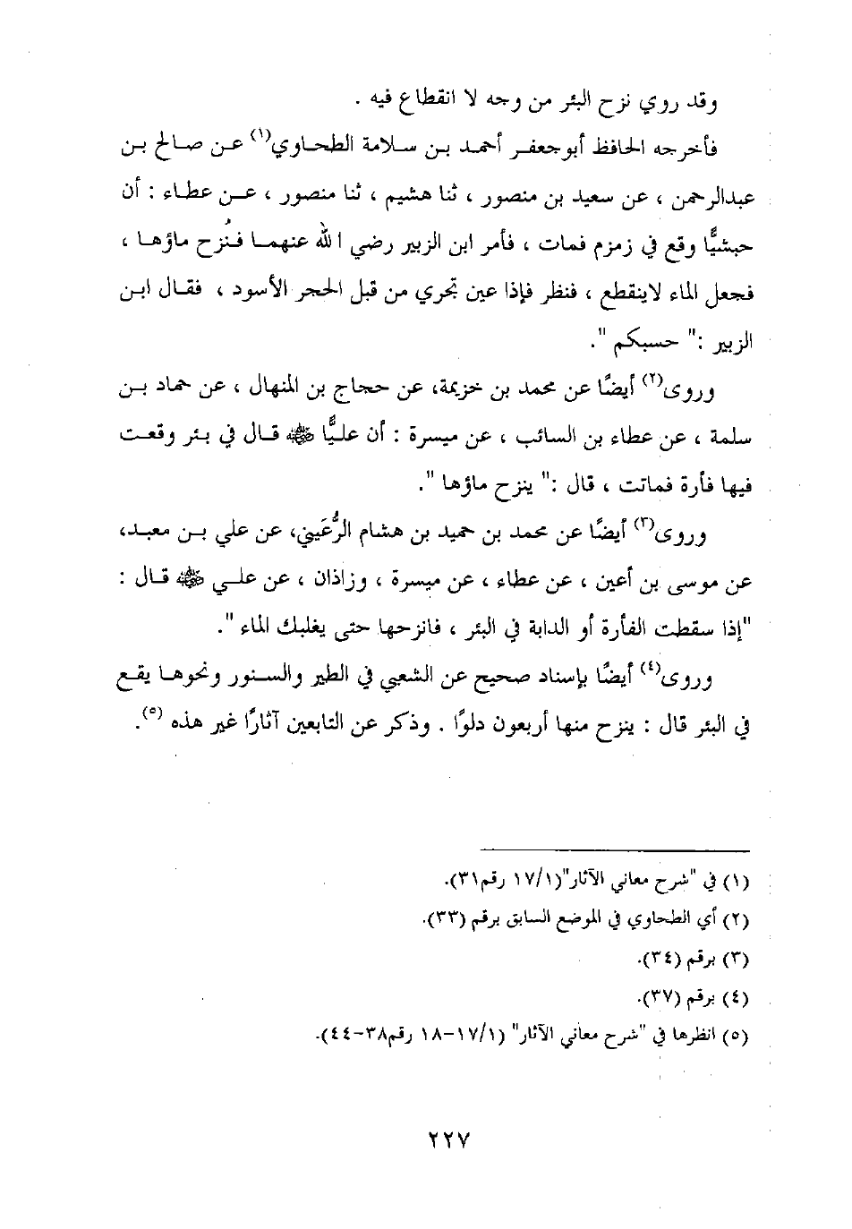 وروى أيضا بإسناد صحيح عن الشعبي في الطير والسنور ونحوها يقع في البئر قال: ينزح منها أربعون دلوا. وذكر عن التابعين آثارا غير هذه.