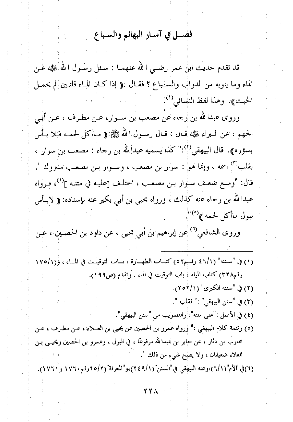 فصل في آسار البهائم والسباع