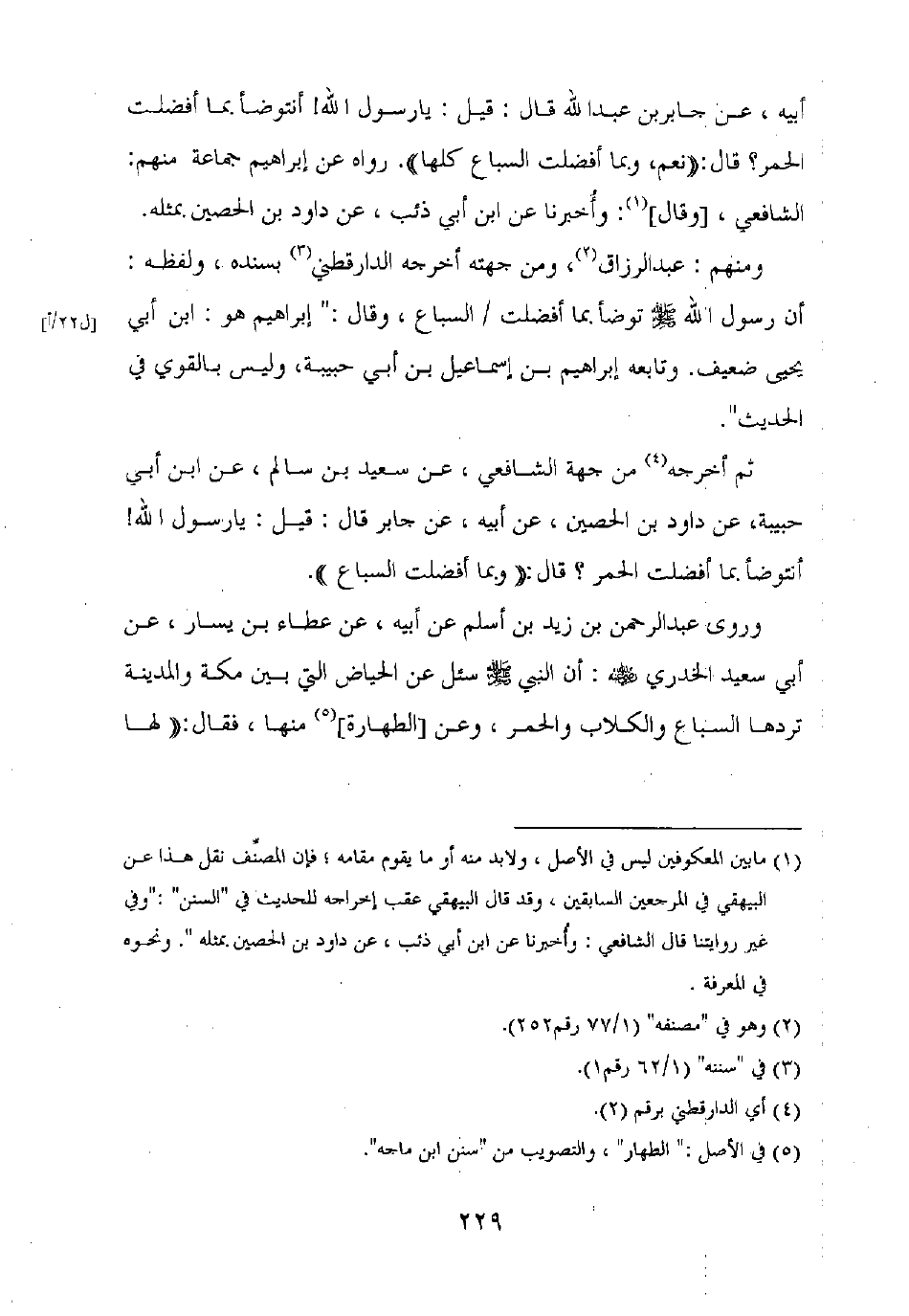 ثم أخرجه من جهة الشافعي، عن سعيد بن سالم، عن ابن أبي حبيبة، عن داود بن الحصين، عن أبيه، عن جابر قال: قيل: يا رسول الله! أنتوضأ بما أفضلت الحمر؟ قال: "وبما أفضلت السباع".