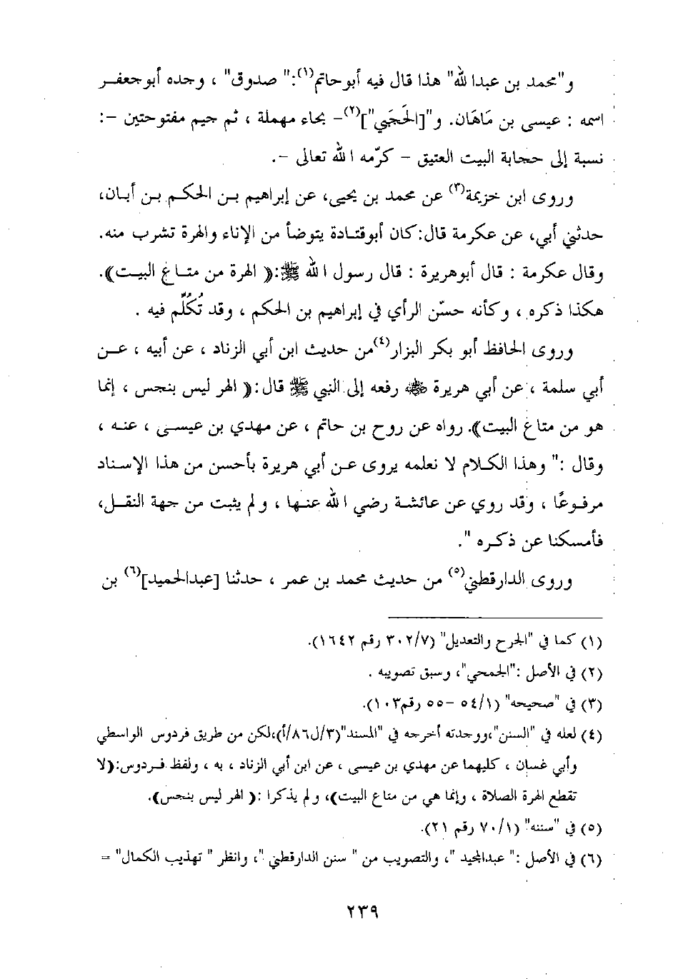 و"محمد بن عبد الله " هذا قال فيه أبو حاتم: "صدوق"، وجده أبو جعفر اسمه: عيسى بن ماهان. و" [الحجبي] " – بحاء مهملة، ثم جيم مفتوحتين -: نسبة إلى حجابة البيت العتيق – كرمه الله تعالى.