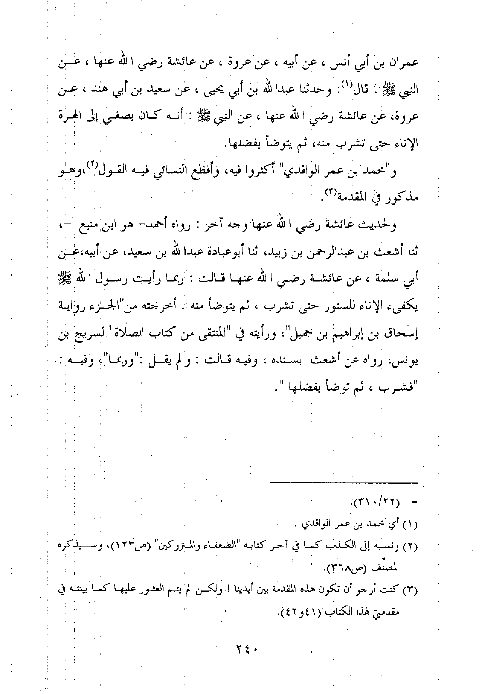 عمران بن أبي أنس، عن أبيه، عن عروة، عن عائشة رضي الله عنها، عن النبي صلى الله عليه وسلم. قال: وحدثنا عبد الله بن أبي يحيى، عن سعيد بن أبي هند، عن عروة، عن عائشة رضي الله عنها، عن النبي صلى الله عليه وسلم: أنه كان يصغي إلى الهرة الإناء حتى تشرب منه، ثم يتوضأ بفضلها.