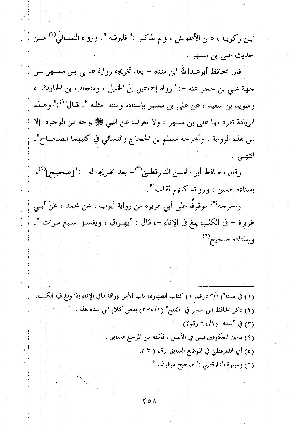 قال الحافظ أبو عبد الله بن منده – بعد تخريجه رواية علي بن مسهر من جهة علي بن حجر عنه: "رواه إسماعيل بن الخليل، ومنجاب بن الحارث، وسويد بن سعيد، عن علي بن مسهر بإسناده ومتنه مثله." قال: "وهذه الزيادة تفرد بها علي بن مسهر، ولا تعرف عن النبي صلى الله عليه وسلم بوجه من الوجوه إلا من هذه الرواية. وأخرجه مسلم بن الحجاج والنسائي في كتبهما الصحاح". انتهى.