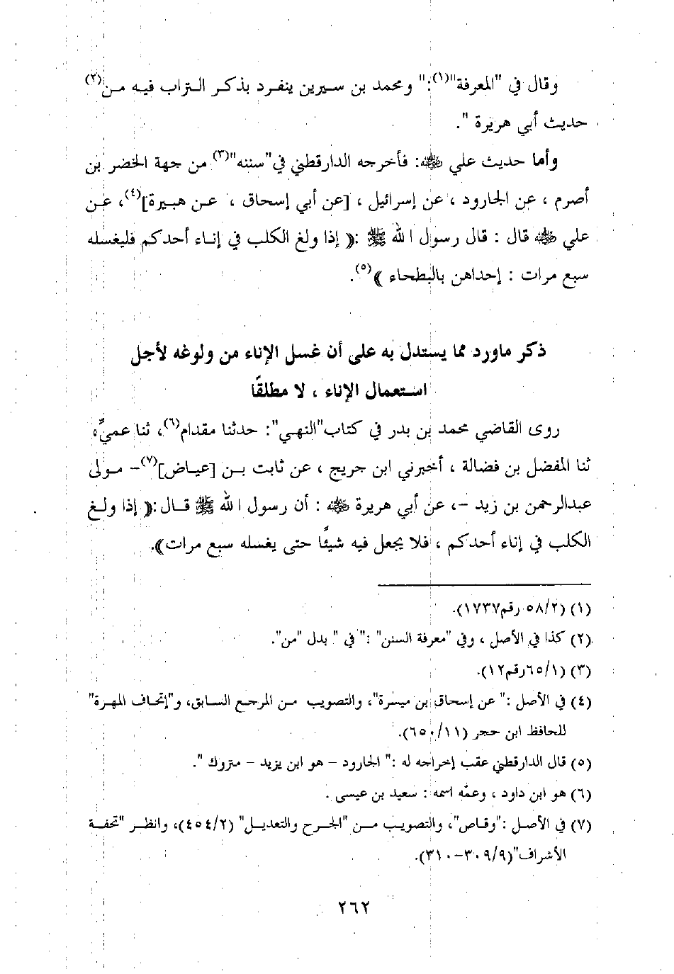 وأما حديث علي رضي الله عنه: فأخرجه الدارقطني في "سننه" من جهة الخضر بن أصرم، عن الجارود، عن إسرائيل، [عن أبي إسحاق، عن هبيرة]، عن علي رضي الله عنه قال: قال رسول الله صلى الله عليه وسلم: "إذا ولغ الكلب في إناء أحدكم فليغسله سبع مرات: إحداهن بالبطحاء".