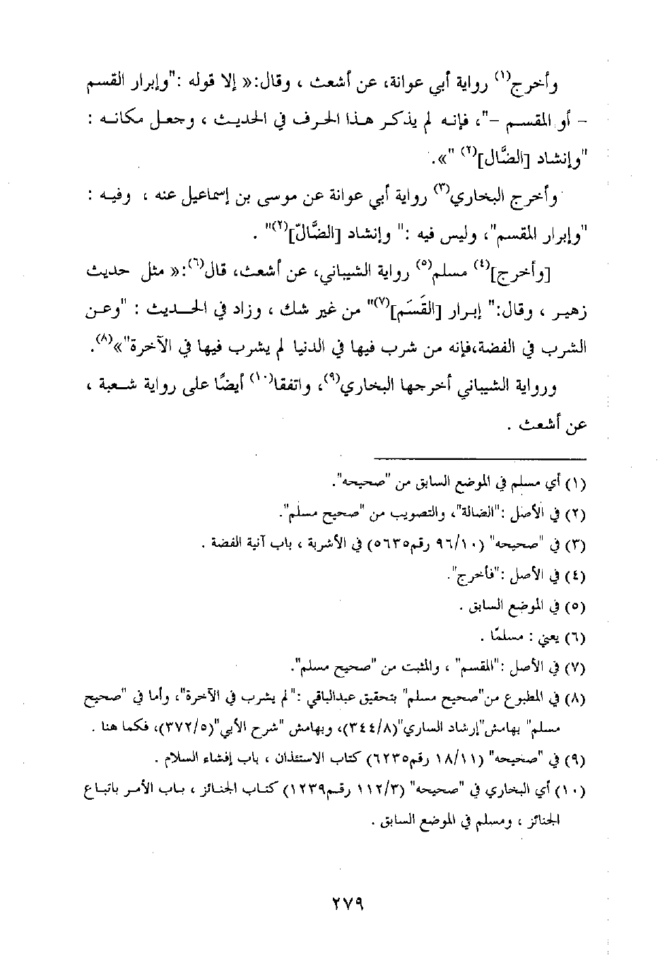 وأخرج رواية أبي عوانة، عن أشعث، وقال: "إلا قوله:"وإبرار القسم – أو المقسم-"، فإنه لم يذكر هذا الحرف في الحديث، وجعل مكانه: "وإنشاد [الضال] ".