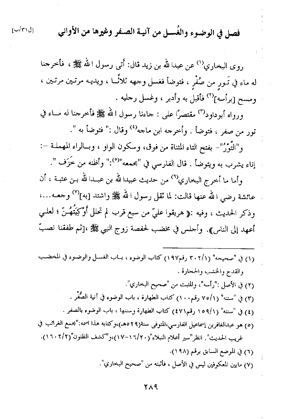 فصل في الوضوء والغسل من آنية الصفر وغيرها من الأواني