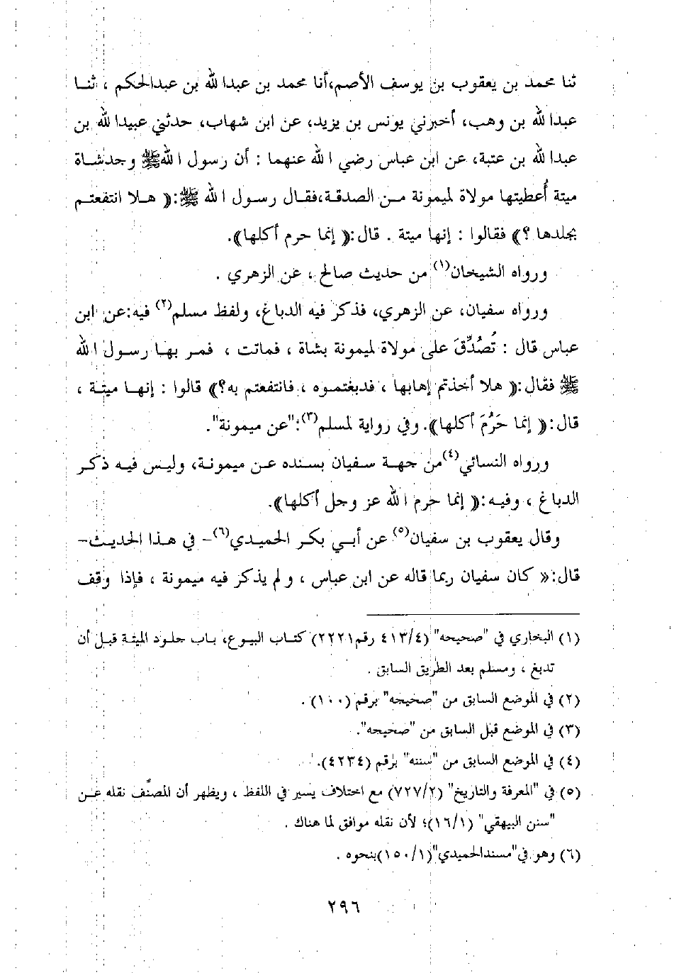ثنا محمد بن يعقوب بن يوسف الأصم، أنا محمد بن عبد الله بن عبد الحكم، ثنا عبد الله بن وهب، أخبرني يونس بن يزيد، عن ابن شهاب، حدثني عبيد الله بن عبد الله بن عتبة، عن ابن عباس رضي الله عنهما: أن رسول الله صلى الله عليه وسلم وجد شاة ميتة أعطيتها مولاة لميمونة من الصدقة، فقال رسول الله صلى الله عليه وسلم: "هلا انتفعتم بجلدها؟ " فقالوا: إنها ميتة. قال: "إنما حرم أكلها".