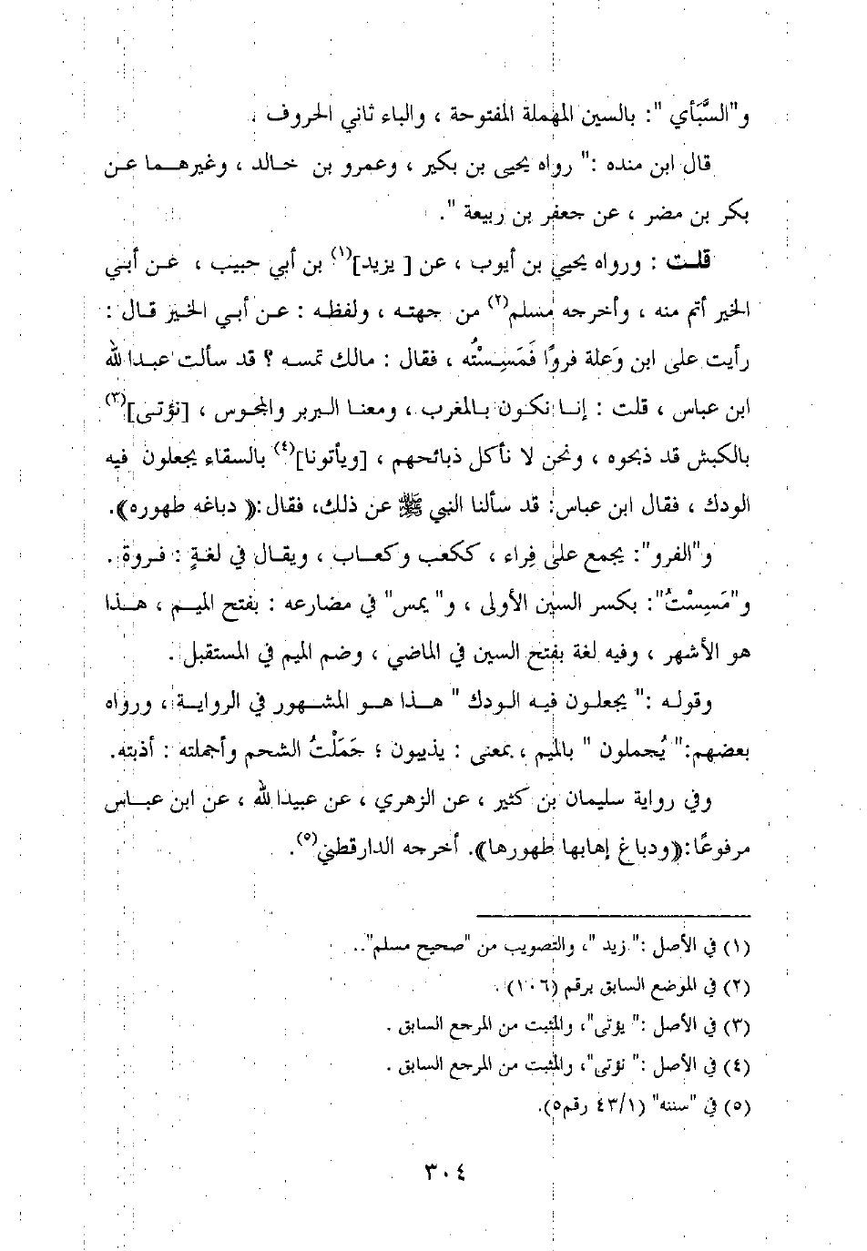 قلت: ورواه يحيى بن أيوب، عن [يزيد] بن أبي حبيب، عن أبي الخير أتم منه، وأخرجه مسلم من جهته، ولفظه: عن أبي الخير قال: رأيت على ابن وعلة فروا فمسسته، فقال: مالك تمسه؟ قد سألت عبد الله بن عباس، قلت: إنا نكون بالمغرب، ومعنا البربر والمجوس، [نؤتى] بالكبش قد ذبحوه، ونحن لا نأكل ذبائحهم، [ويأتونا] بالسقاء يجعلون فيه الودك، فقال ابن عباس: قد سألنا النبي صلى الله عليه وسلم عن ذلك، فقال: "دباغه طهوره".