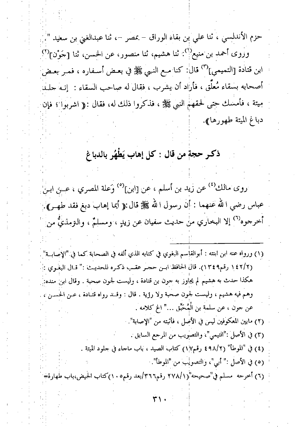 روى مالك عن زيد بن أسلم، عن [ابن] وعلة المصري، عن ابن عباس رضي الله عنهما: أن رسول الله صلى الله عليه وسلم قال: "أيما إهاب دبغ فقد طهر".