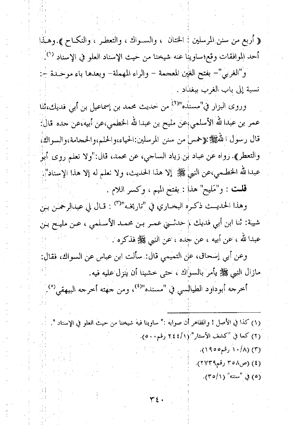 "أربع من سنن المرسلين: الختان، والسواك، والتعطر، والنكاح". وهذا أحد الموافقات وقع، ساوينا عنه شيخنا من حيث الإسناد العلو في الإسناد.