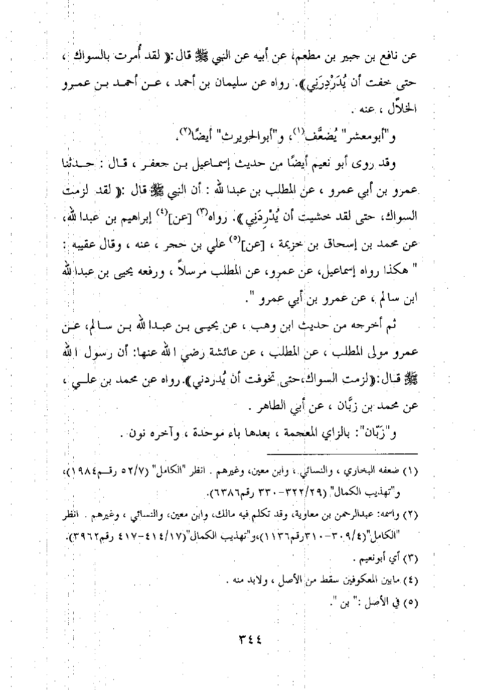 عن نافع بن جبير بن مطعم، عن أبيه عن النبي صلى الله عليه وسلم قال: "لقد أمرت بالسواك، حتى خفت أن يدردرني". رواه عن سليمان بن أحمد، عن أحمد بن عمرو الخلال، عنه.