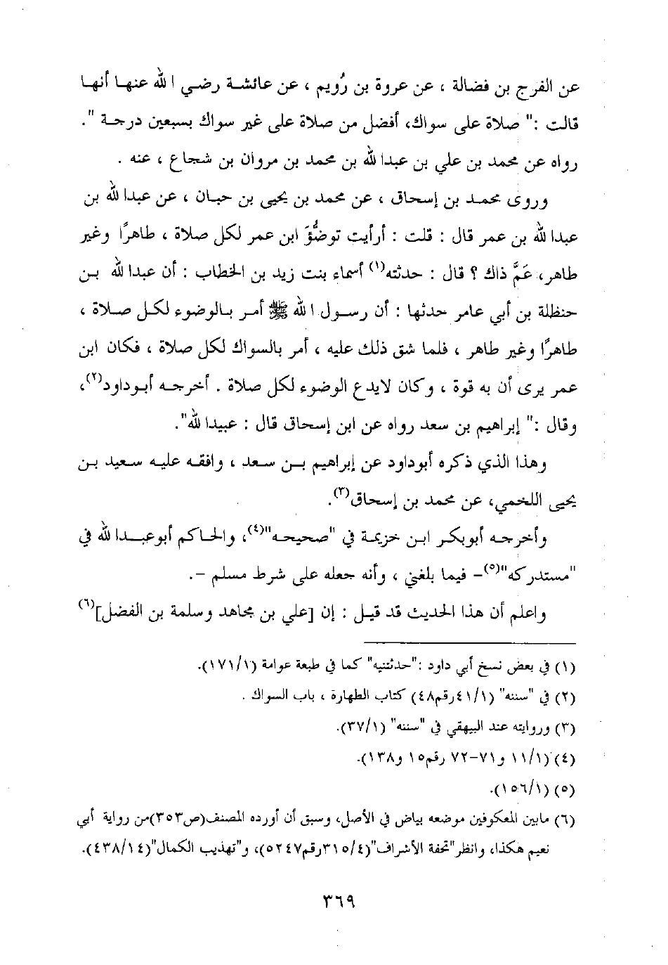 عن الفرج بن فضالة، عن عروة بن رويم، عن عائشة رضي الله عنها أنها قالت: "صلاة على سواك، أفضل من صلاة على غير سواك بسبعين درجة".