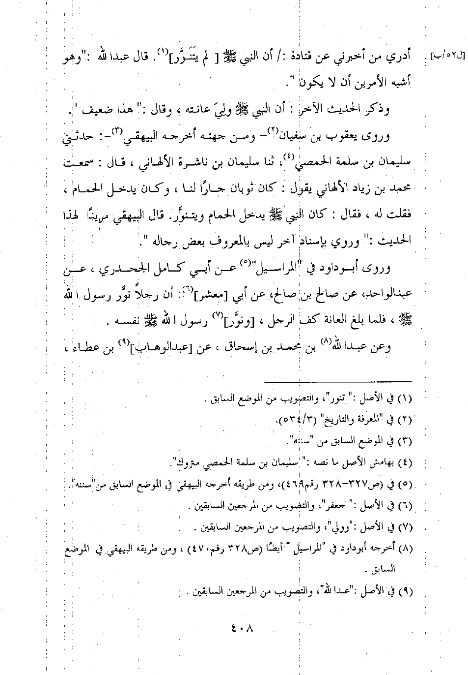 وروى أبو داود في "المراسيل" عن أبي كامل الجحدري، عن عبد الواحد عن صالح بن صالح، عن أبي [معشر]: أن رجلا نور رسول الله صلى الله عليه وسلم، فلما بلغ العانة كف الرجل، [ونور] رسول الله صلى الله عليه وسلم نفسه.