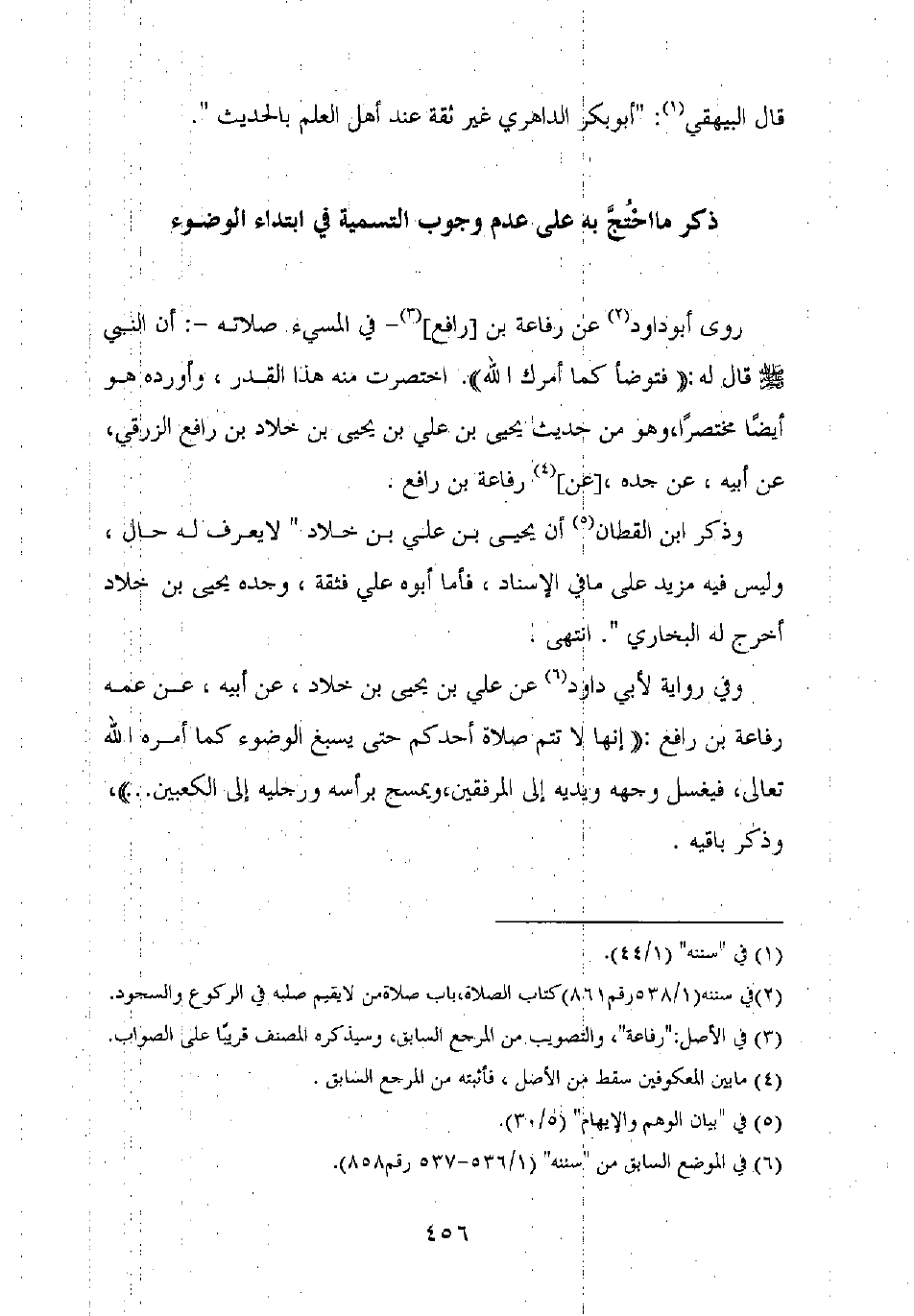 روى أبو داود عن رفاعة بن [رافع] – في المسيء صلاته –: أن النبي صلى الله عليه وسلم قال له: "فتوضأ كما أمرك الله". اختصرت منه هذا القدر، وأورده هو أيضا مختصرا، وهو من حديث يحيى بن علي بن يحيى بن خلاد بن رافع الزرقي، عن أبيه، عن جده، [عن] رفاعة بن رافع.