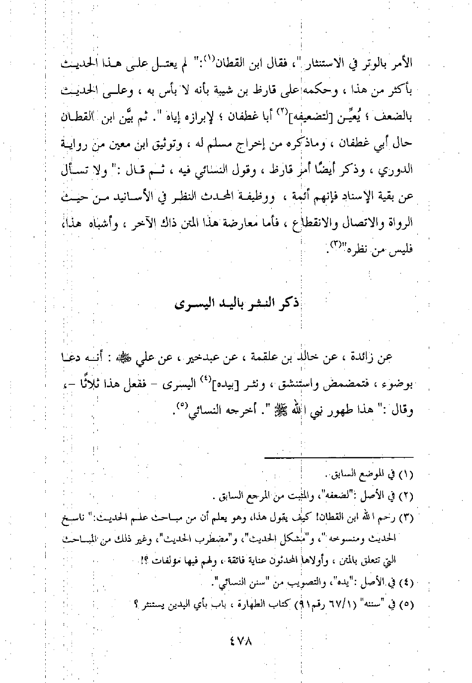 عباس رضي الله عنهما قال: قال رسول الله صلى الله عليه وسلم: "استنثروا مرتين بالغتين أو ثلاثا". وأخرجه ابن ماجه، وابن الجارود، وقال "ثنتين".
