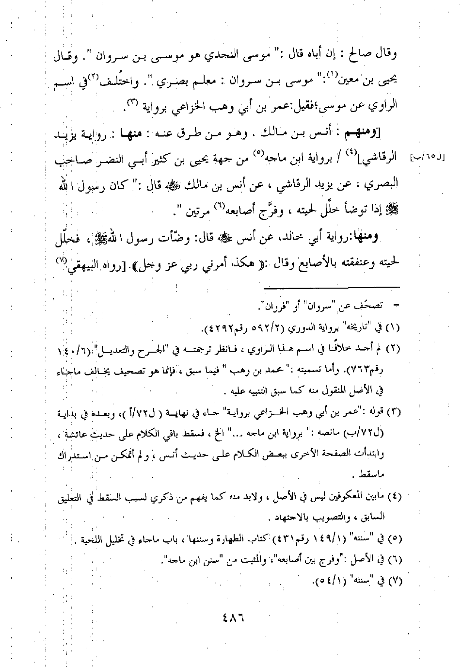 أيوب، عن هلال بن فياض، عن [عمر بن أبي] وهب، عن موسى بن ثروان، عن طلحة بن [عبيد الله] بن كريز، عن عائشة رضي الله عنها قالت: كان رسول الله صلى الله عليه وسلم إذا توضأ خلل لحيته.