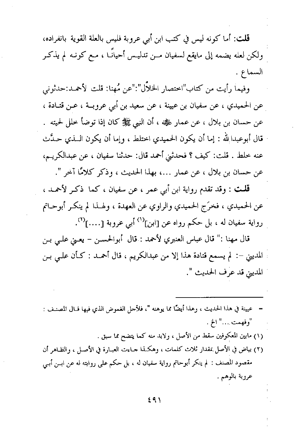 وذكر ابن أبي حاتم في كتاب "العلل" عن أبيه أنه قال: "لم يحدث [بهذا] أحد سوى ابن عيينة عن ابن أبي عروبة. قلت: هو صحيح؟ قال: لو كان صحيحا لكان في مصنفات ابن أبي عروبة".