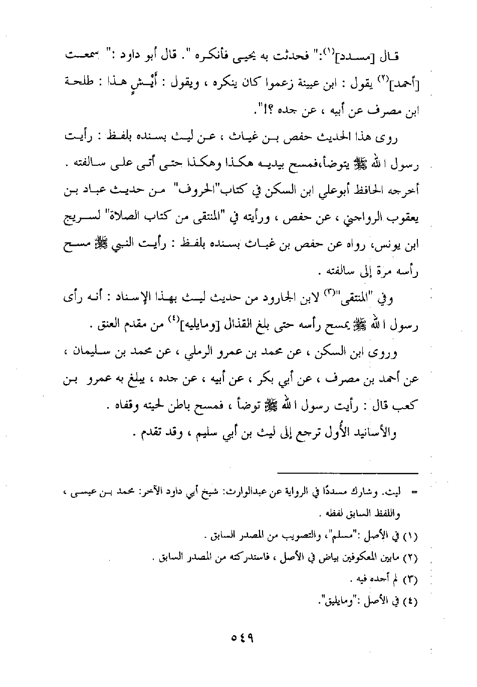 قال [مسدد]: "فحدثت به يحيى فأنكره". قال أبو داود: "سمعت [أحمد] يقول: ابن عيينة زعموا كان ينكره، ويقول: أيش هذا: طلحة بن مصرف عن أبيه، عن جده؟! ".