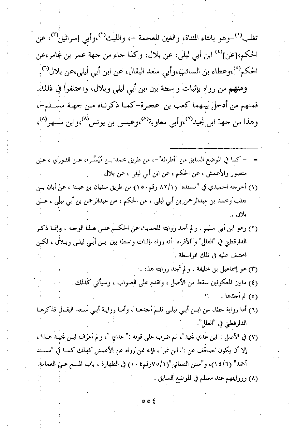 تغلب – وهو بالتاء المثناة والغين المعجمة –، والليث، وأبي إسرائيل، عن الحكم، [عن] ابن أبي ليلى، عن بلال، وكذا جاء من جهة عمر بن عامر، عن الحكم، وعطاء بن السائب، وأبي سعد البقال، عن ابن أبي ليلى، عن بلال.