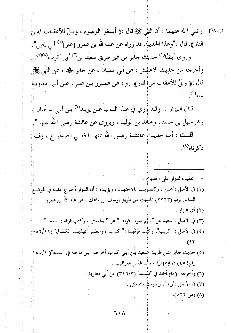 رضي الله عنهما: أن النبي صلى الله عليه وسلم قال: "أسبغوا الوضوء، ويل للأعقاب من النار". قال: "وهذا الحديث قد رواه عن عبد الله بن عمرو [غير] أبي يحيى".