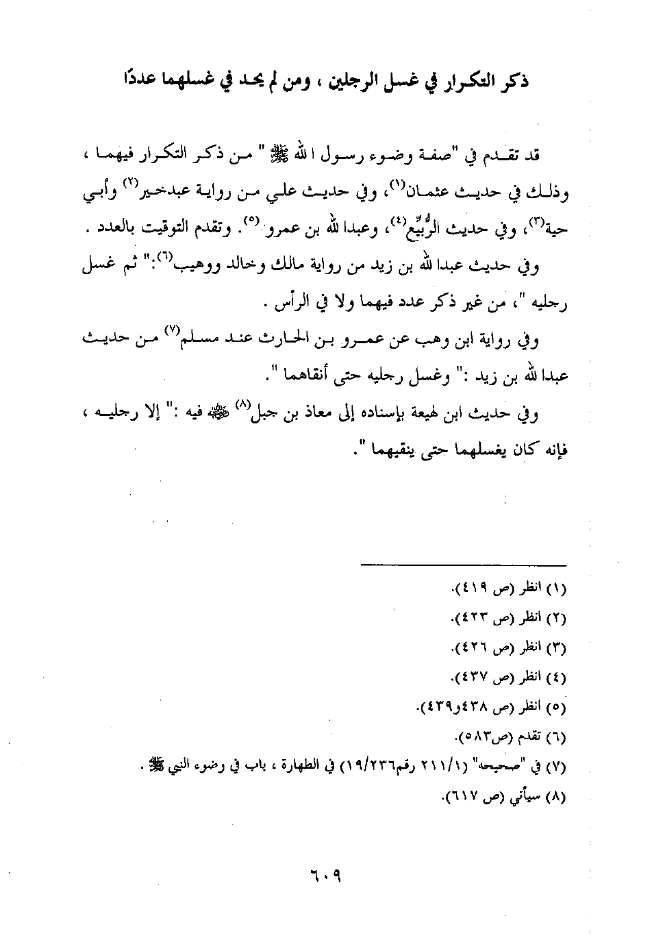 ذكر التكرار في غسل الرجلين، ومن لم يحد في غسلهما عددا