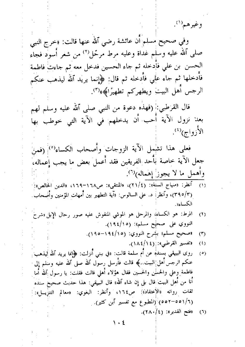 (¬1) انظر: «منهاج السنة» : (4/21) ، «المنتقى» : ص 168 - 169، «الدين الخالص» : (3/395) ، وانظر: د. علي السالوس: «آية التطهير بين أمهات المؤمنين وأصحاب الكساء» .