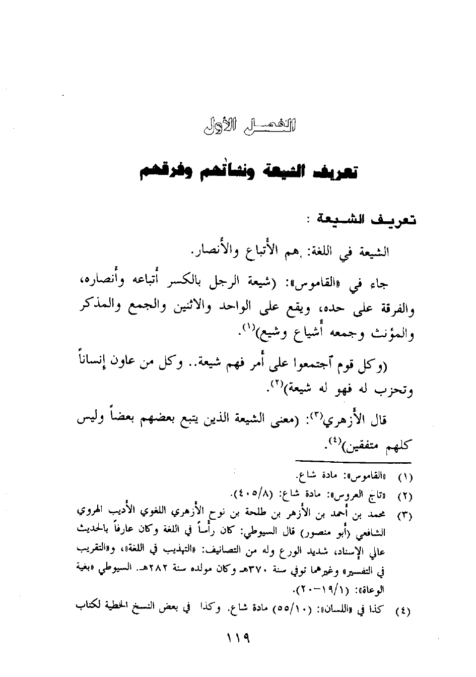 الفصل الأول: تعريف الشيعة ونشأتهم وفرقهم